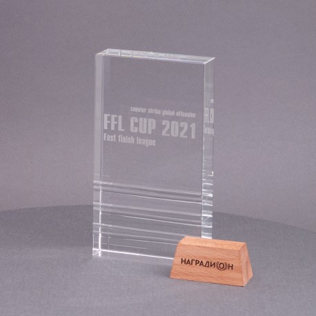 Наградная стела из хрусталя К9 с наиболее низким процентом включений. Марка хрусталя обеспечивает полную прозрачность, чистоту и светоотражение. Прямоугольная стела украшена декоративными прорезями в нижней части.