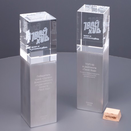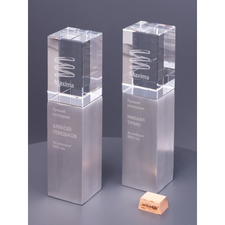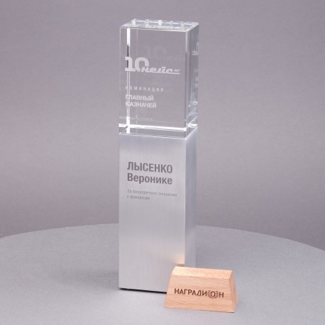 Строгая и элегантная награда на стальном постаменте. Поставляется в комплекте с лаконичным футляром.