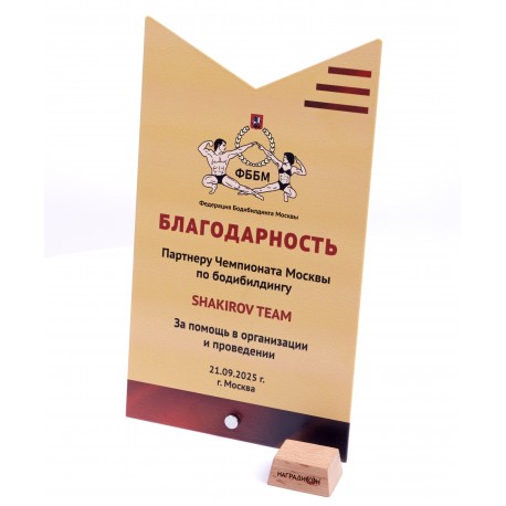 Оригинальный приз-плакетка изготовлен полностью из металла.