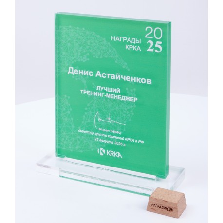 Награда из прозрачного акрила на постаменте. Толщина акрила 10 мм.