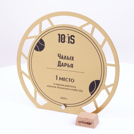 Приз с резной окантовкой обладает необычным дизайном и изготовлен из качественного металла.