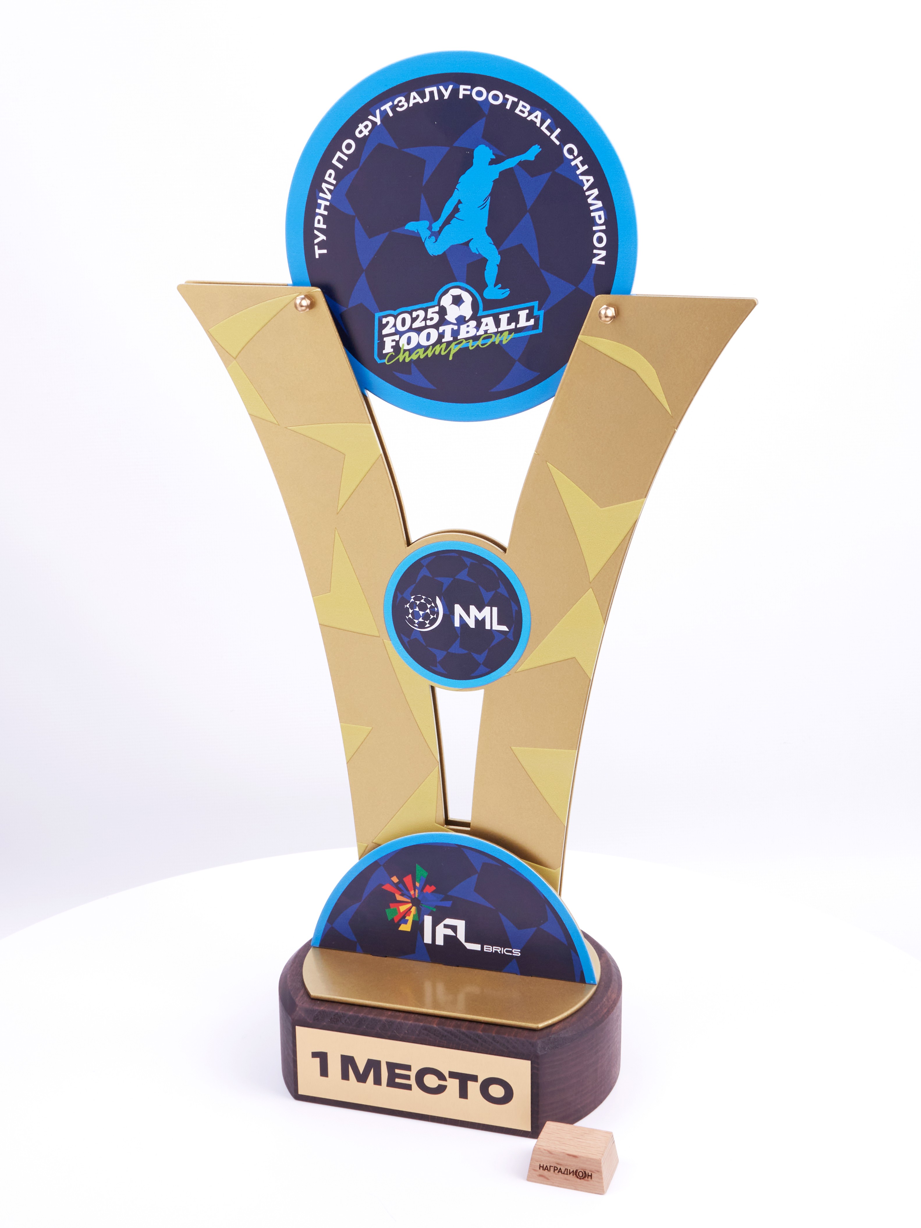 Приз был изготовлен по специальному заказу для Турнира по футзалу FOOTBALL CHAMPION в 2025 году.